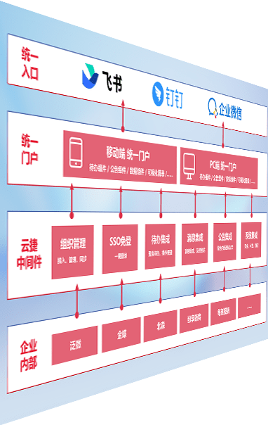对协作平台提供支持服务,,支持企业应用与协作平台对接,,包含组织同步、、、、消息集成、、、待办集成等。。。。支持目前主流的协作平台:钉钉、、、、企微和飞书。。